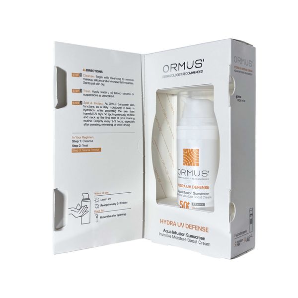کرم ضد آفتاب بدون رنگ اورموس +SPF 50 مدل Hydra UV Defense ‌محافظ UVA ،UVB و PA++++ ، مناسب برای  پوست‌ خشک و حساس حجم 50 میلی‌لی